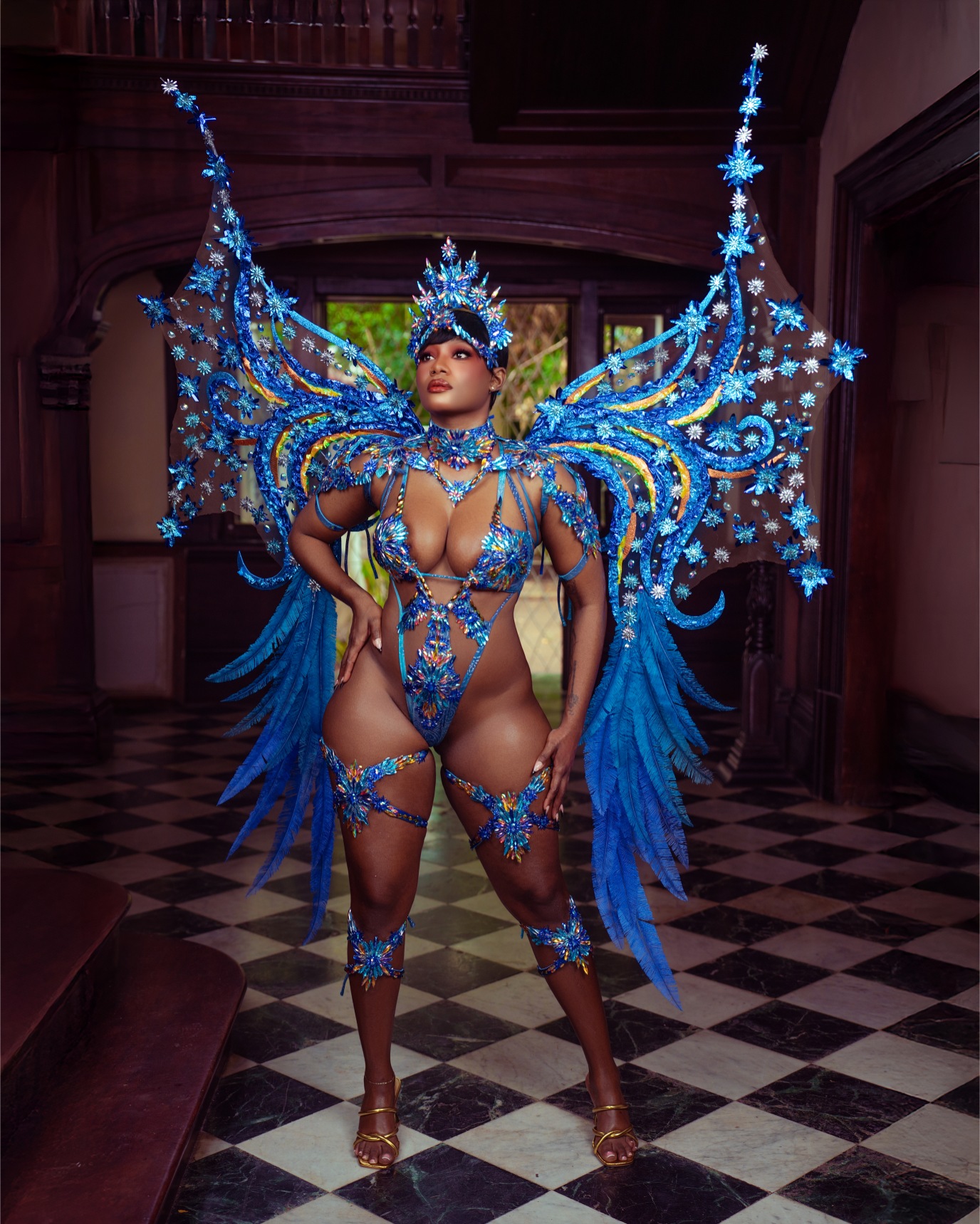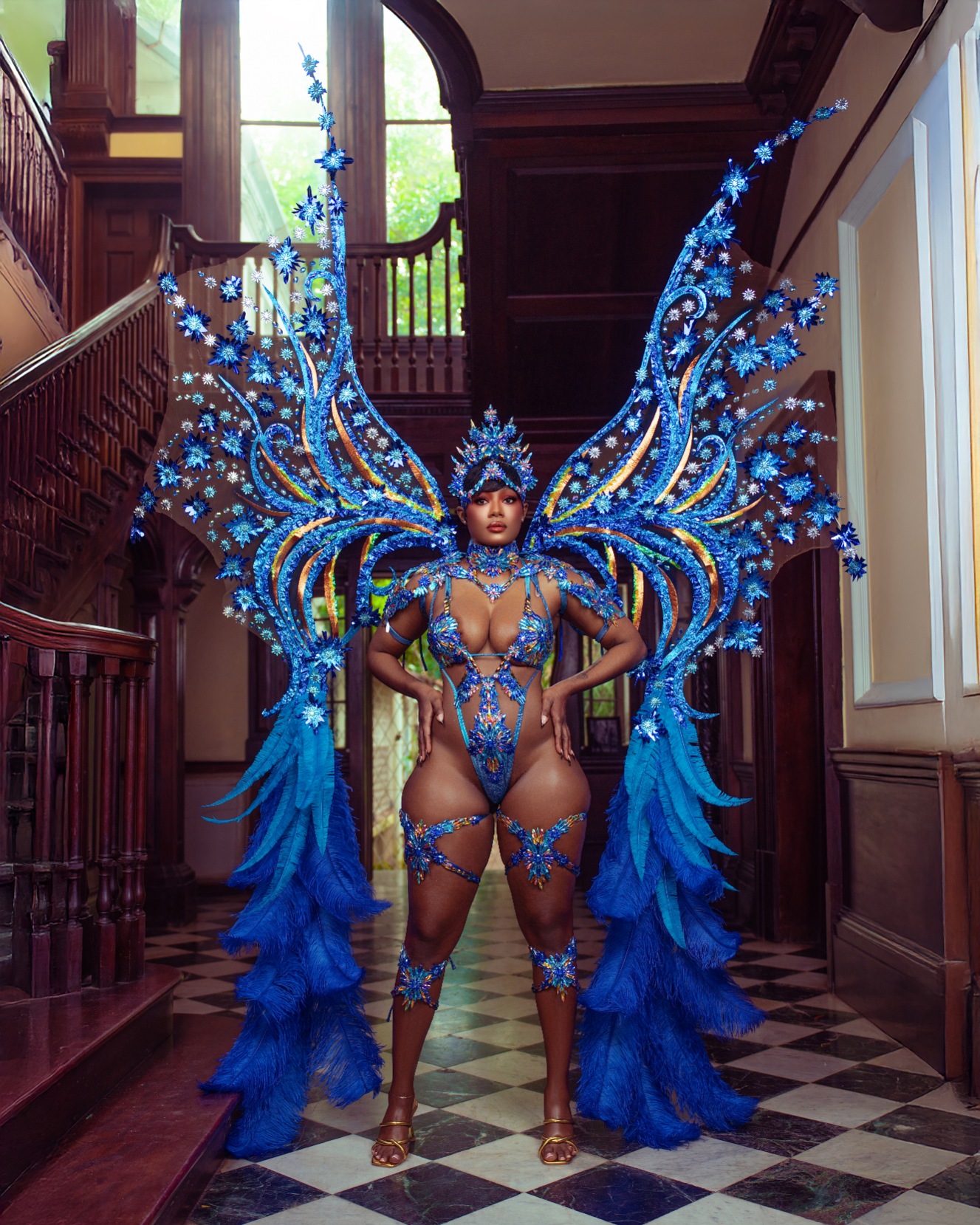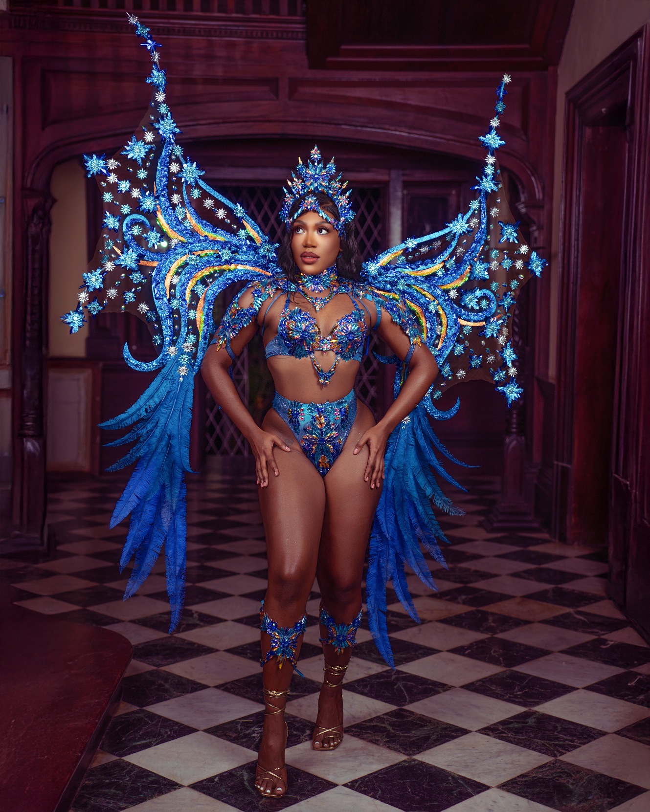 the costume like windswept brushstrokes under a Caribbean sky. Masqueraders move as living canvases, glowing with emotion, motion, and artistry. This section is a tribute to colour, texture, and the beauty found in every stroke of inspiration as bodies revel freely to the carnival escape.