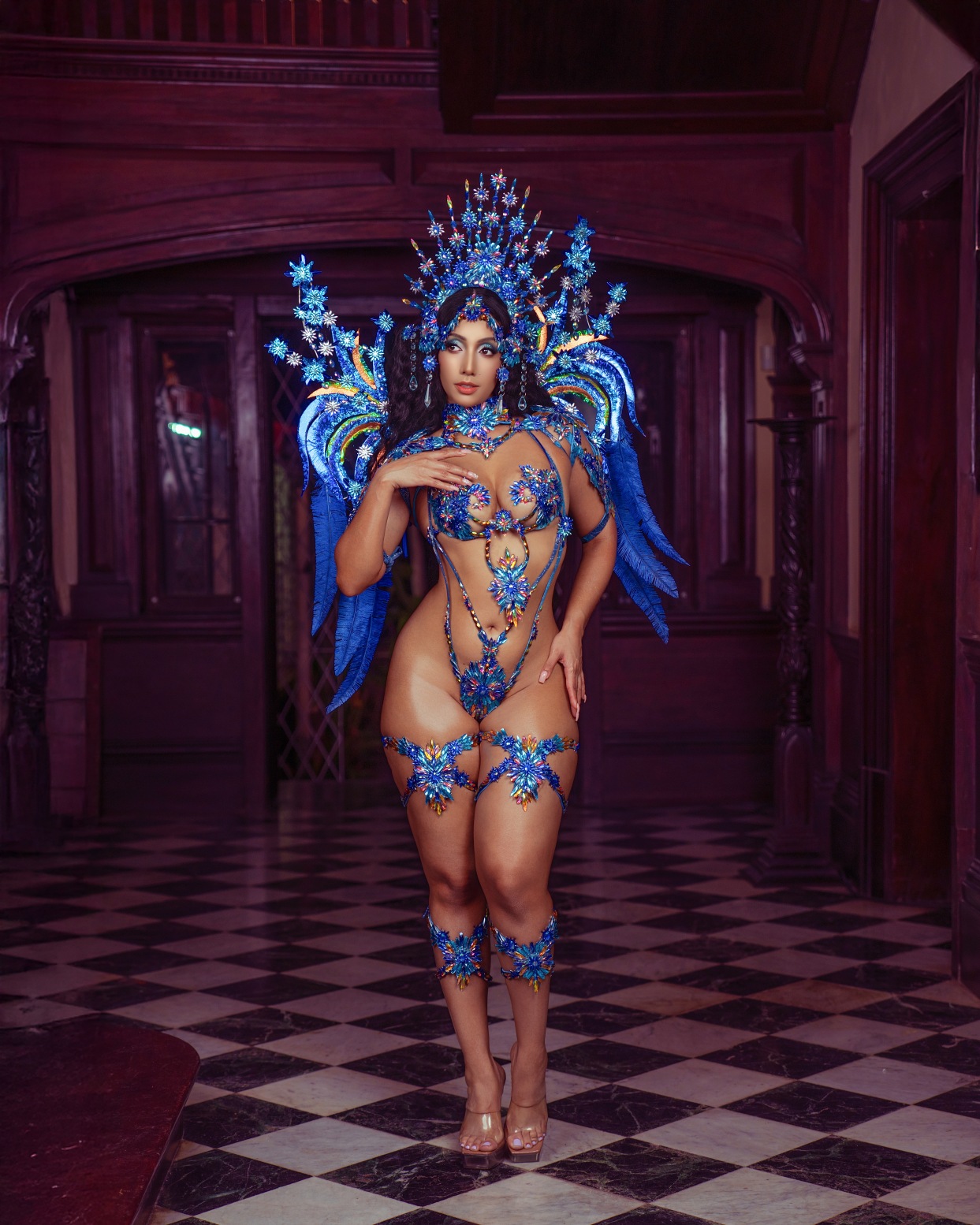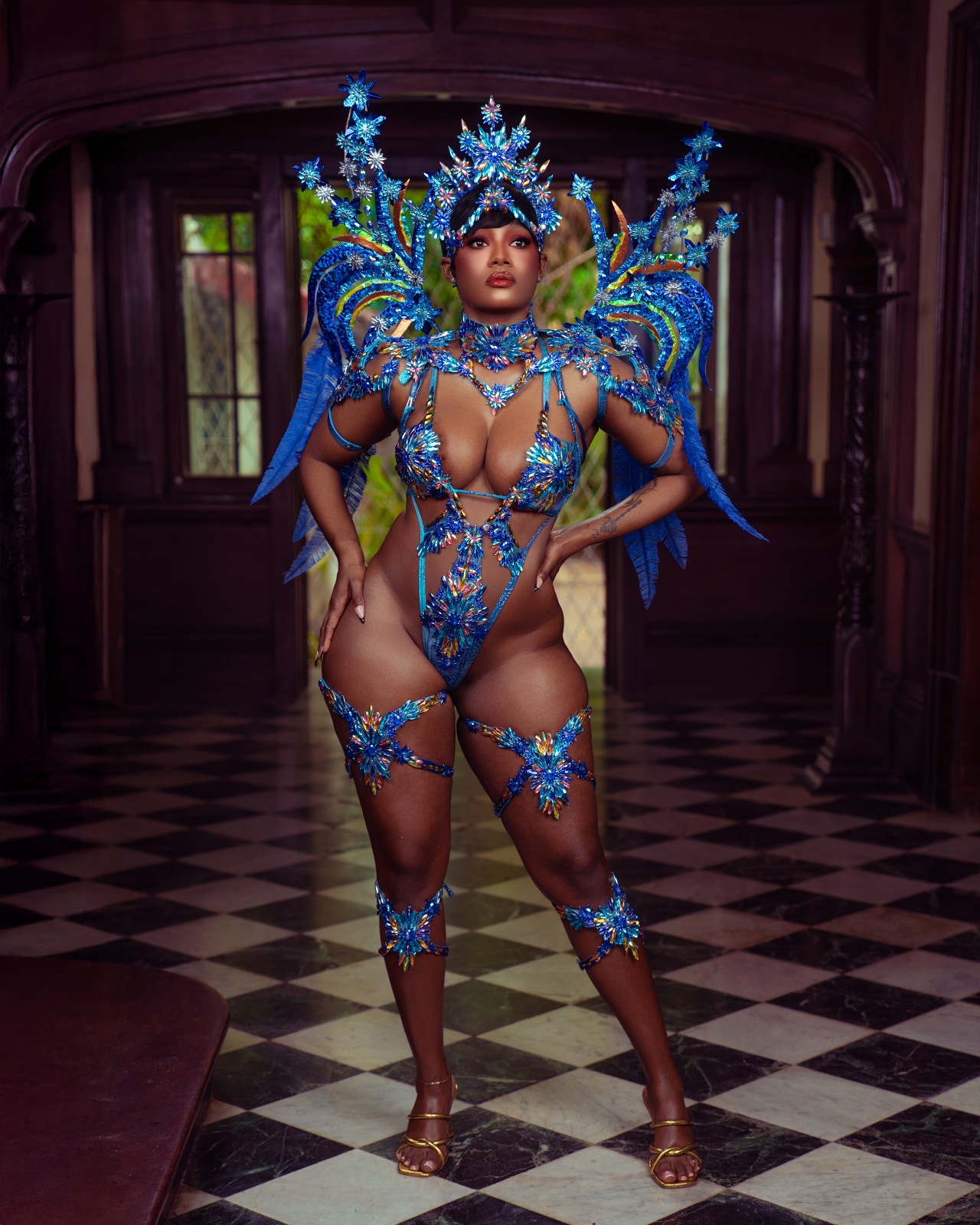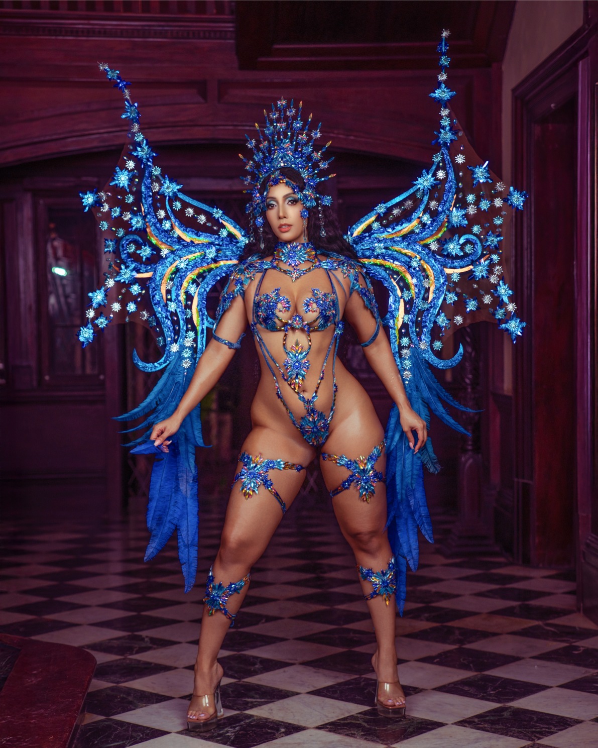 the costume like windswept brushstrokes under a Caribbean sky. Masqueraders move as living canvases, glowing with emotion, motion, and artistry. This section is a tribute to colour, texture, and the beauty found in every stroke of inspiration as bodies revel freely to the carnival escape.