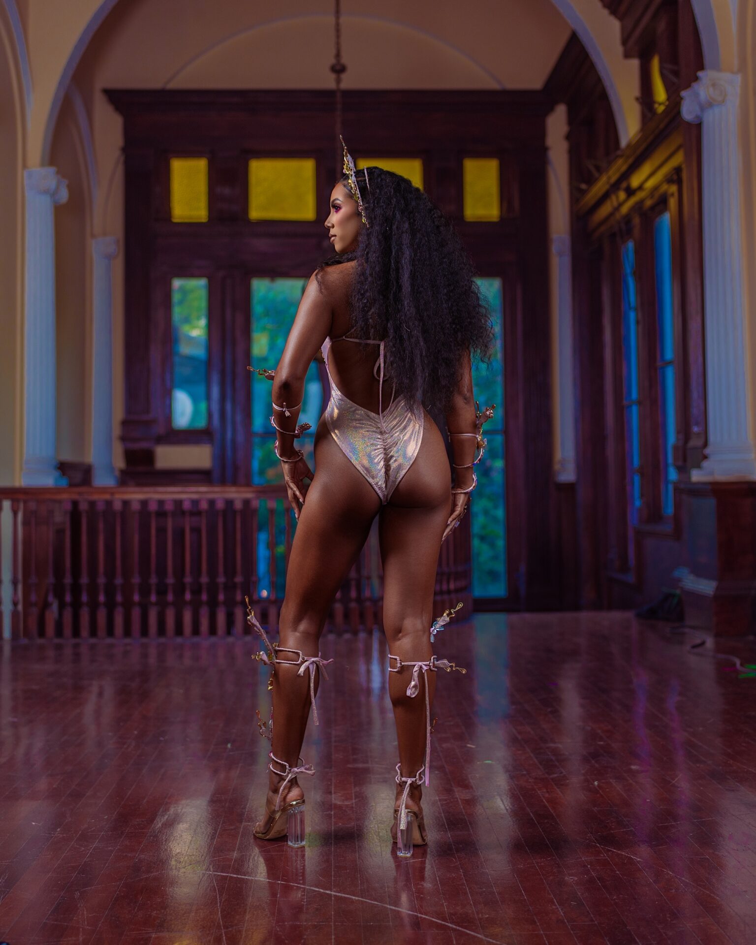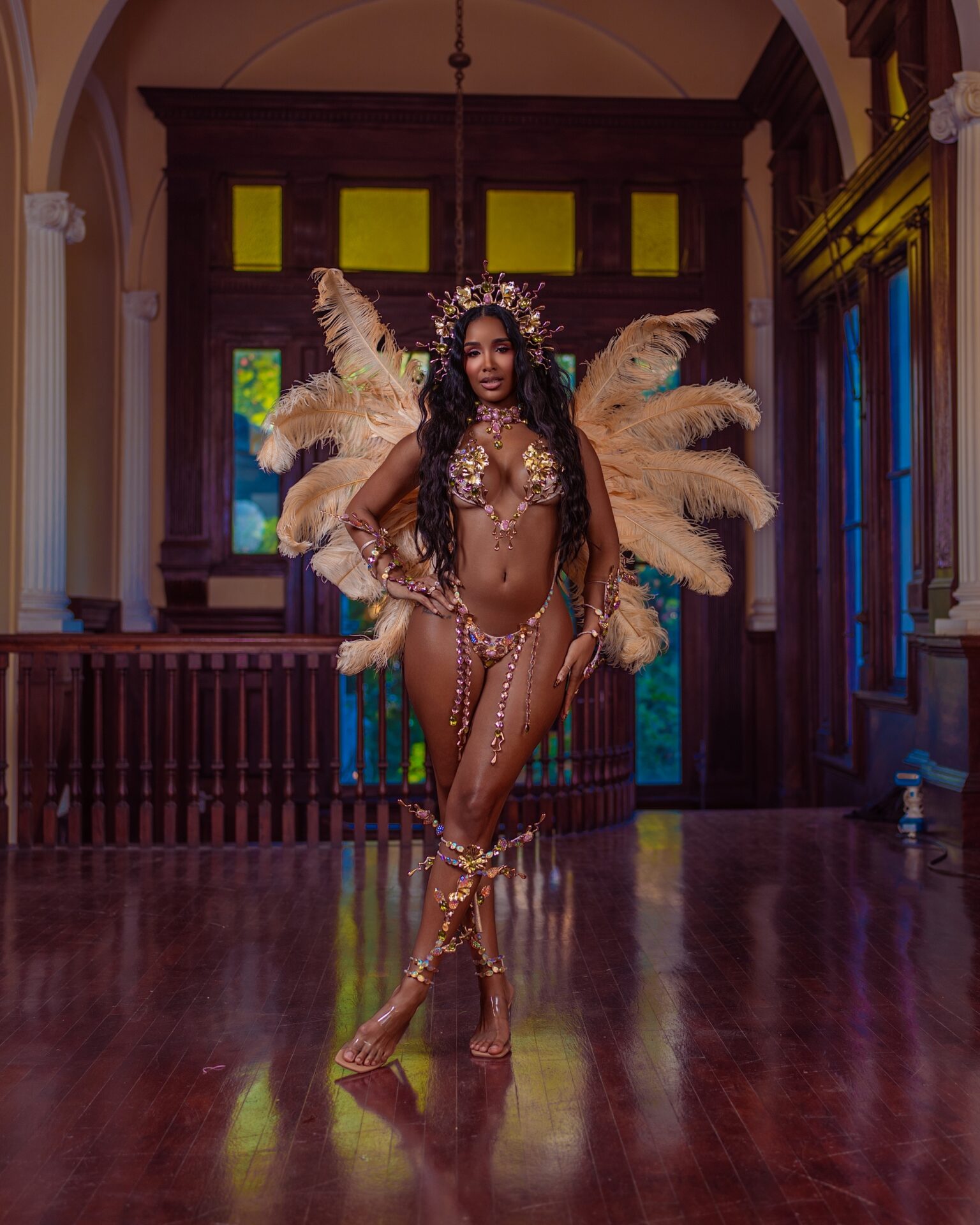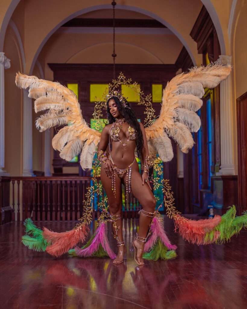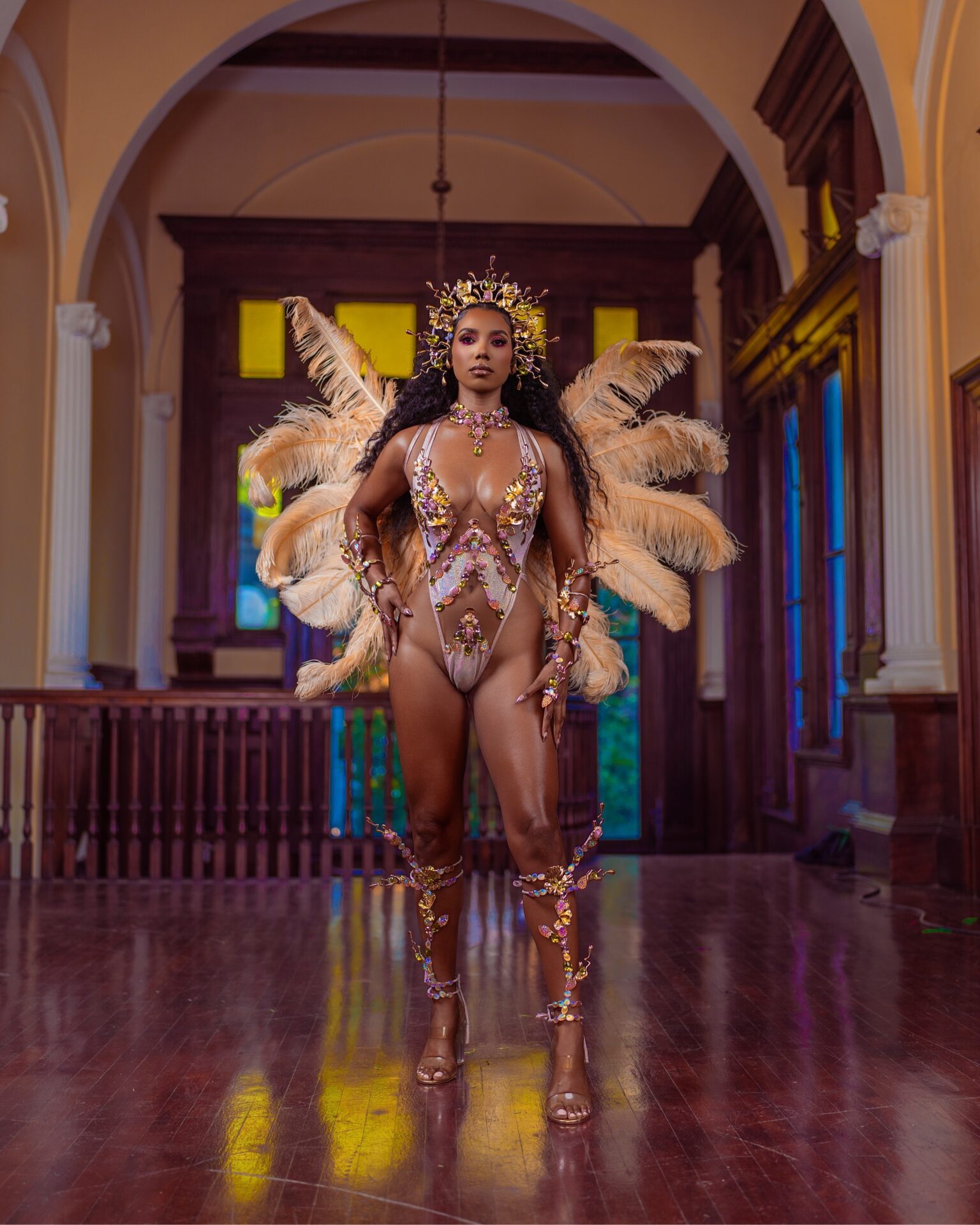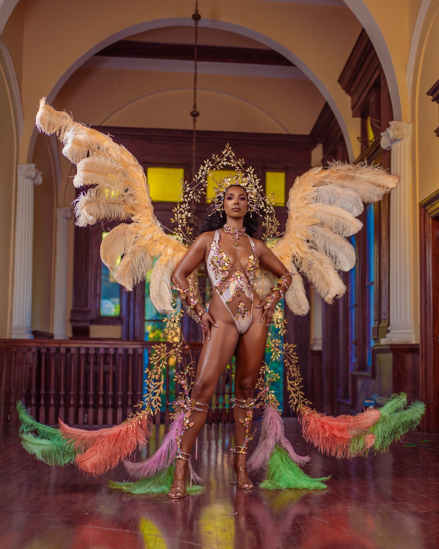 Venus is where Botticelli’s classical grace becomes a modern Carnival fantasy. Soft pastels, warm earth tones, and lush greens flow together, creating a costume that